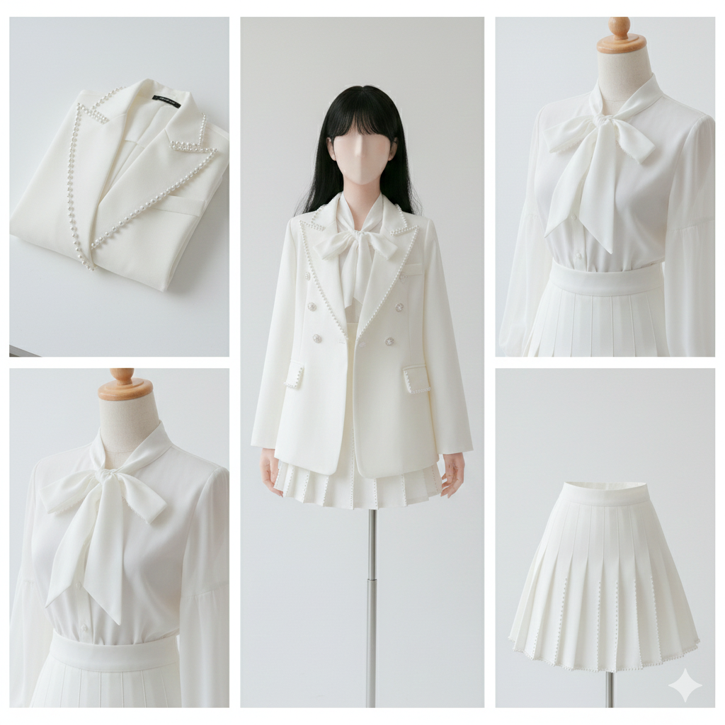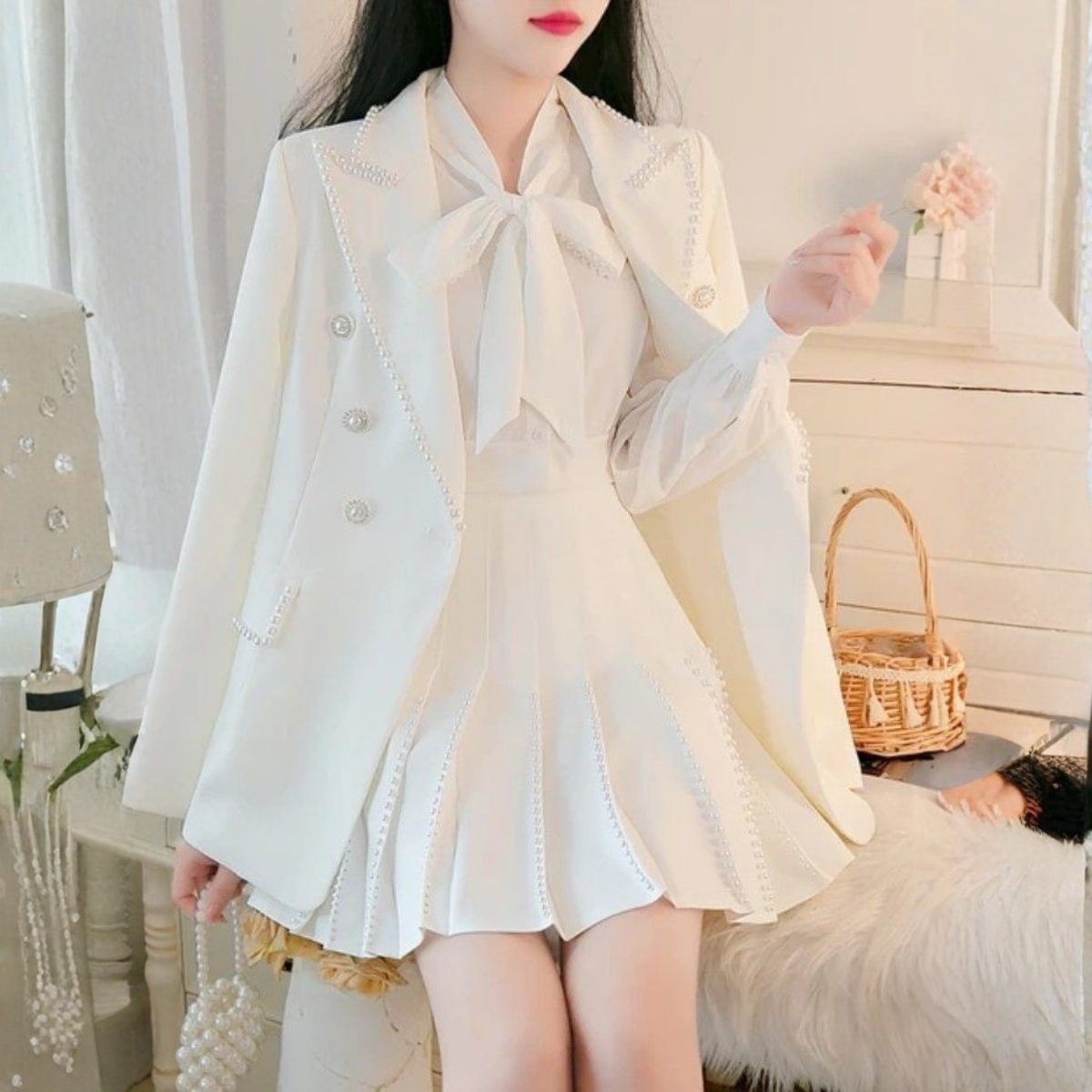 ชุดเซ็ตสูทกระโปรงโบว์ขาว